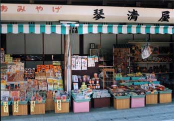 昭和の初めからこの地でお土産屋を続けて70余年。 まんじゅう,せんべい,漬物各種,天狗面なども取り揃えております。ケーブル清滝駅前にもお店があります。